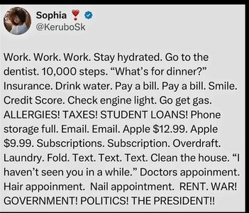 They want you as exasperated as Sophia is in her post below. They want you overwhelmed, distracted, depressed, drunk and stoned, fat and lazy in a sugar coma until you die.