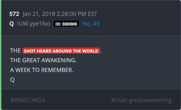 I believe we can expect a week to remember!! Great catch and decode by @WeAreTheNews. What else do we have? The shot heard around the world Q Post on the exact same date.