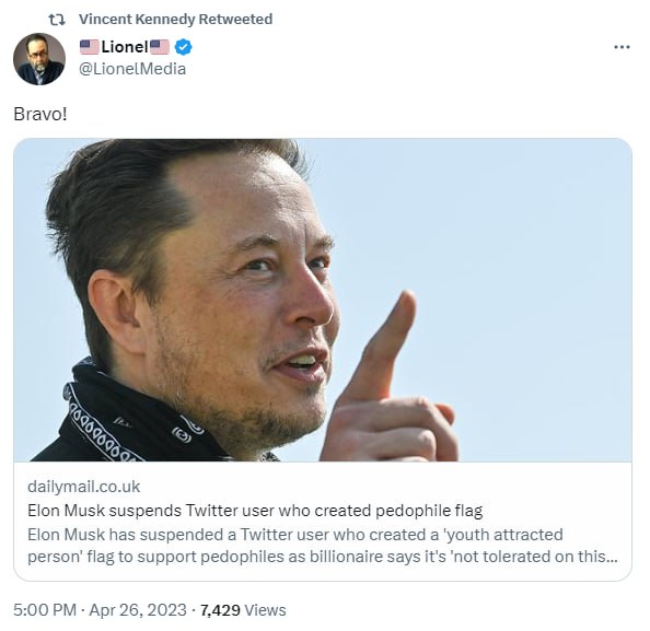 Two sets of rules - Elon suspends user with pedo flag while the law protects pedophiles. #GAG