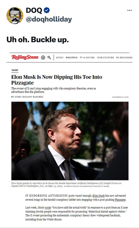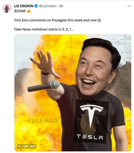 Timing is everything - Elon Musk dropped Q*Anon and Q in three separate posts, dipped his toe in Pizzagate and wants the Epstein Island flight logs made public.